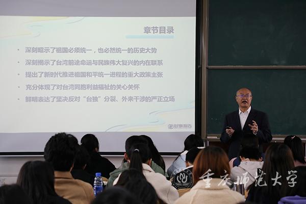 杨如安深刻阐述了习近平总书记在《告台湾同胞书》发表40周年纪念会上重要讲话精神,全面介绍了70年来两岸关系发生的历史性变化、取得的突破性进展。提出要以习近平总书记重要讲话精神为指导,团结台湾同胞共谋民族复兴、扎实推进祖国和平统一进程、坚持深化两岸融合发展。在讲解中国特色外交内容时,他谈到,新中国外交70年来取得了历史性成就,体现了鲜明的中国特色、中国风格和中国气派。他指出,要以习近平外交思想为指导,统筹国内国际两个大局,走和平发展道路,促进“一带一路”国际合作,积极参与引领全球治理体系改革和建设,推动构建人类命运共同体,努力开创大国外交新局面。