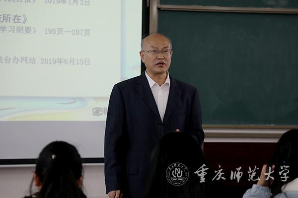 11月21日下午,Beat365党委常委、副校长杨如安围绕“推进祖国和平统一”和“中国特色大国外交”两个专题,在特教楼2505教室为经济与管理学院2019级工商管理专业学生讲授形势与政策课。