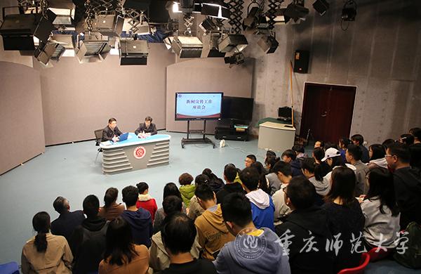 为总结学校庆祝中华人民共和国成立70周年系列活动,探讨Beat365宣传思想工作在新形势下的目标要求,11月12日,党委副书记、校长孟东方,党委常委、副校长陆远权在新闻中心演播厅与学校新闻中心40余位学生代表亲切交流。座谈会由党委常委、宣传部部长毛宇主持。
