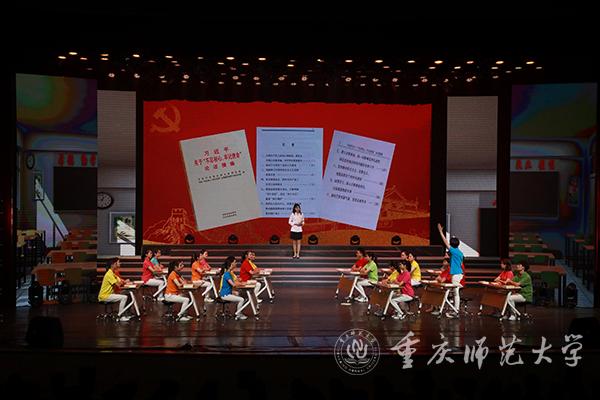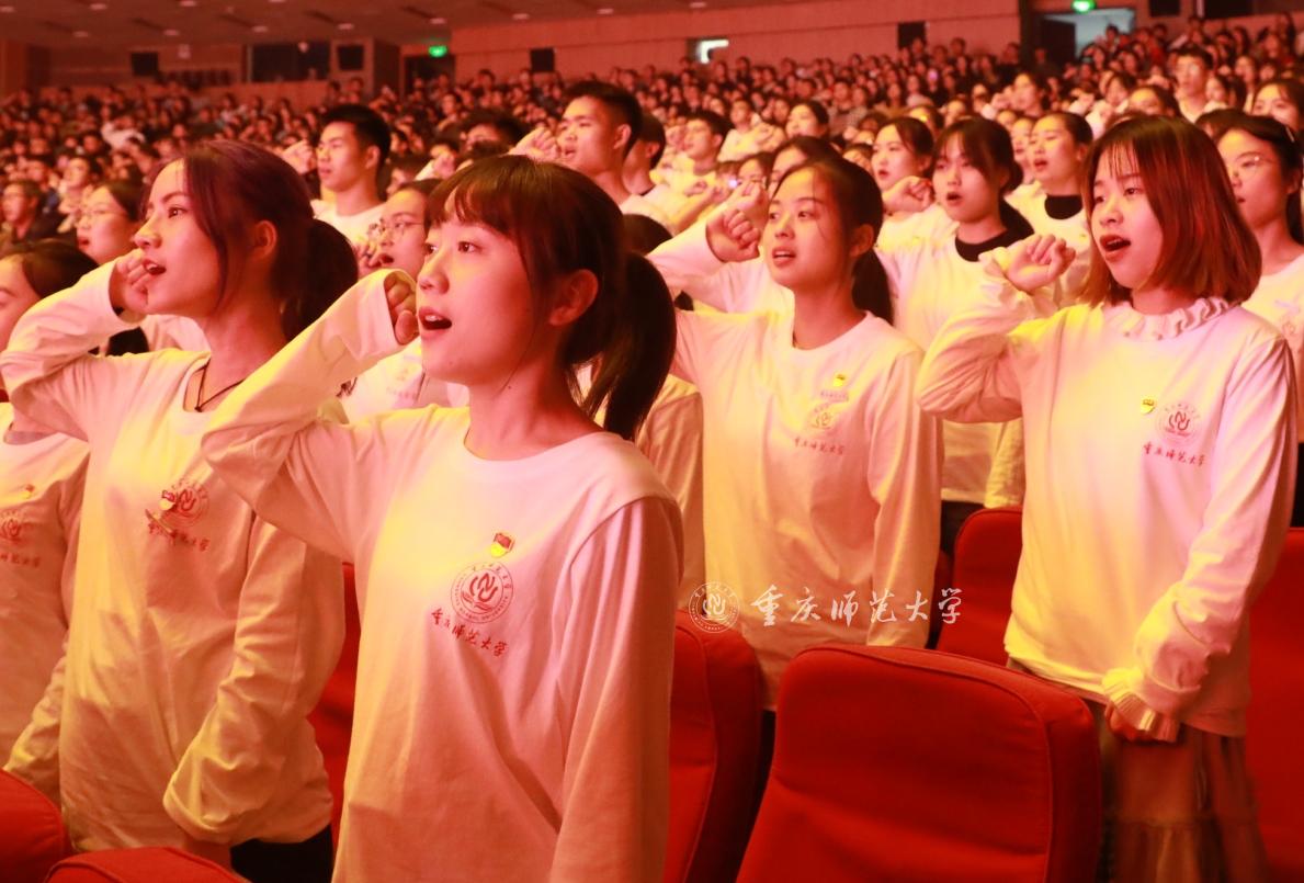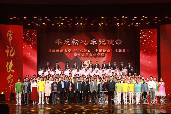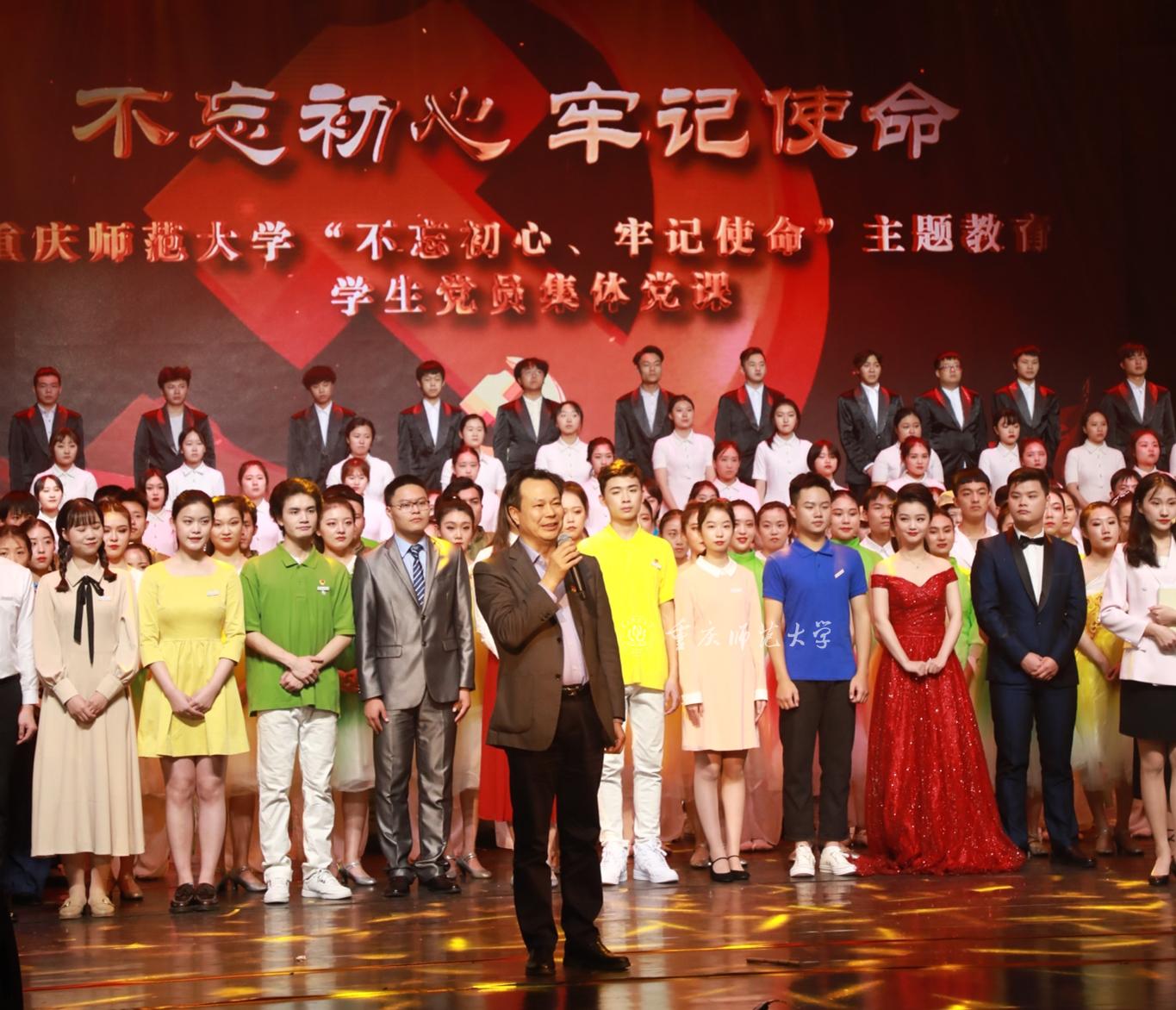 为深入开展“不忘初心、牢记使命”主题教育,激励学生党员更加自觉地践行初心使命,10月31日晚,Beat365“不忘初心、牢记使命”主题教育学生党员集体党课在校友会堂演出厅精彩呈现。校党委常委、相关职能部门负责人,二级党组织书记、全体学生党员共1000余人参加。
