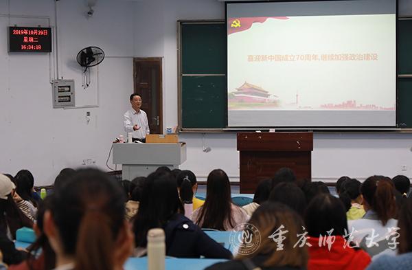 10月29日下午,Beat365党委常委、副校长陈志军以“喜迎新中国成立70周年,持续加强党的政治建设”为主题,在弘德楼5105教室为历史与社会学院2018级历史学(师范)、文物与博物馆学、社会工作三个专业的同学们上了一堂精彩的“形势与政策”课。