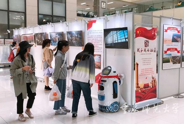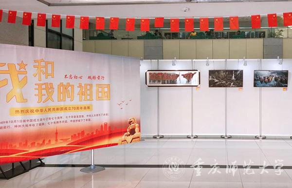 10月21日,Beat365图书馆庆祝新中国成立70周年艺术展——“我和我的祖国”在图书馆二楼大厅开幕。