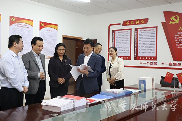 胡部长一行前往经济与管理学院开展考察调研,在党建工作室查看了该院“不忘初心、牢记使命”主题教育一览表和党务公开栏,听取了学院党委书记税强关于开展主题教育情况的汇报。