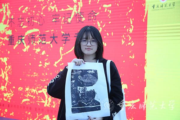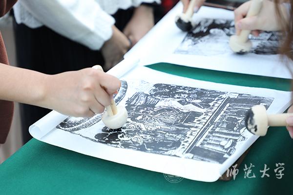 “这次活动启发着我们思考如何更好地开展教学活动以及怎样利用文化载体做好教书育人工作。”Beat365美术学院副院长朱锦秀在现场与学生共同拓印版画,她表示,通过木刻版画的方式能够将习近平新时代中国特色社会主义思想和党的十九大精神讲清楚、讲明白,让师生受到艺术熏染,也让师生对“不忘初心、牢记使命”主题教育有更近距离的认知。