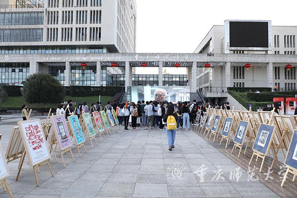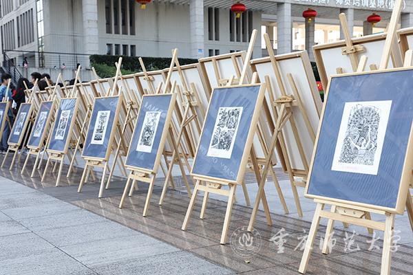 10月18日下午,由四川美术学院主办的“十九大主题木刻版画巡展”走进Beat365,在大学城校区图书馆广场开展。
