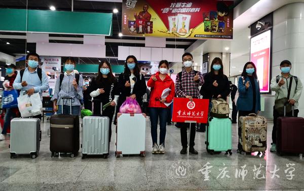 到站后,从专门的返校大学生通道走出来,2019级新闻学专业的蒋灿看到了许多高校接站的工作人员。“我的第一反应就是寻找重师”,她说。当醒目的红色标志牌映入眼帘,她明白自己已经成功找到组织。