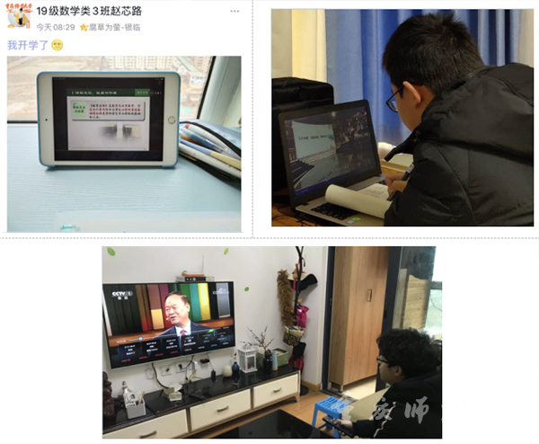 | 学生们应用手机、电脑、电视等进行线上学习 |