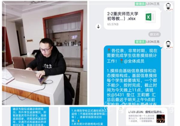 在这段特殊的日子里,重师人不断散发着光与热。马克思主义学院教授肖陆军发起建立“关爱抗击新型冠状病毒肺炎医护人员子女爱心辅导团队”的倡议,联合有爱心和志愿精神的教师、学生和党员干部,通过QQ群、微信群联络志愿为抗击新冠肺炎医护人员和患者的子女提供线上作业辅导、心理疏导、才艺指导和思想引导等服务。他们守护孩子成长,全力以赴为白衣战士们提供后方支援,解除一线医护人员的后顾之忧。现已有千余名志愿者申请加入爱心辅导行列,为重庆市援鄂医疗队、新型冠状病毒肺炎定点收治医疗机构和乡镇卫生院提供了教育支撑服务。