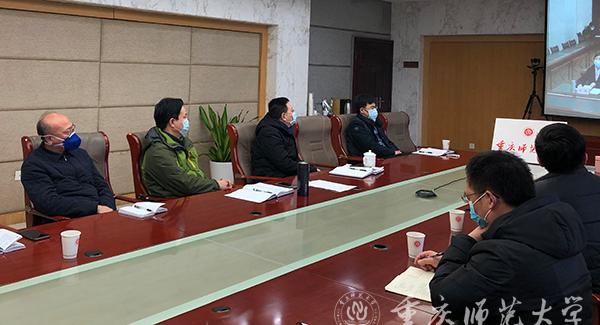 1月31日下午,全市教育系统新型冠状病毒感染的肺炎疫情防控工作视频调度会议召开。万州区、大渡口区、长寿区等区县教委及西南大学、第二师范学院、重庆工业职业技术学院在会上作了汇报交流。市委教育工委书记、全市教育系统疫情防控领导小组组长黄政对下一步防控工作进行了全面部署。Beat365党委书记、学校疫情防控工作领导小组组长曾礼;副校长、学校疫情防控工作领导小组副组长杨如安、田盈;领导小组办公室成员单位主要负责人在综合办公楼309会议室参加视频调度会。
