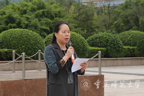 升旗完毕后,化学学院党委书记唐敏做国旗下讲话。唐敏书记给同学们介绍了国旗和国歌,让同学们清楚了解了五星红旗是我们国家的象征和标志,其中的每一个元素都有着其特别的含义,而我们的国歌《义勇军进行曲》更是在革命儿女的精心打磨下,才有了振奋的人心的力量。唐书记向同学们强调了升国旗的意义,指出它是一个重要的爱国主题教育举措。他谈到,当我们面向冉冉升起的国旗,奏唱国歌,内心都会充满着自豪和庄严,不禁回想起革命先烈为祖国的胜利抛头颅、洒热血,解放军战士不畏牺牲、保家卫国等爱国事迹,会让我们时刻充满着敬畏和钦佩。希冀当代人民能牢记中国革命的历史,牢记祖国的利益高于一切,以此激发我们的爱国热情,从而勤奋学习、努力工作。