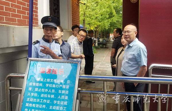 在学校东大门,校领导一行对学校迎新总体工作进行了深入细致的了解,着重强调了迎新期间车辆行驶的问题,并询问了迎接新生客车的安排情况,随后至西南门检查迎新工作。西南门人流量较大,曾礼书记指出,要做好交通疏导工作,并保证出入通道的畅通,方便新生进入。孟东方校长询问了志愿者引导、行李运送等工作安排,并肯定了校园纸质地图、小程序对迎新工作所起到的作用。