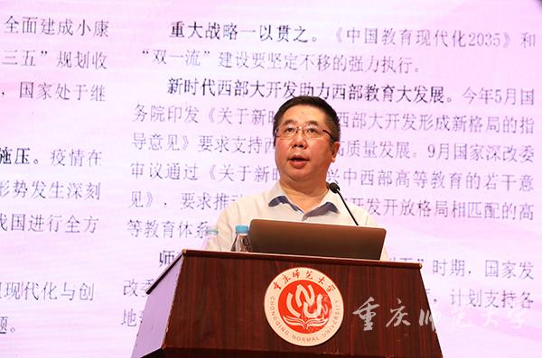 孟校长从国家、教育、重庆、学校四个层面对当前形势任务进行了分析,强调Beat365全力抓好内涵式发展的重要性,并提出了总体要求——要落实党代会精神,按照“1+4”五年行动计划、2020年目标任务抓落实,深入实施本科教育振兴、学科引领联动、重师文化建设、特色发展四大发展战略,全力抓好申博、学科评估、参与科学城建设、编制“十四五”规划等重点任务。他对下半年主要工作进行了以下部署:一是持续做好常态化防疫工作,采取从严从实从细落实疫情防控精神、进一步完善疫情防控方案、加强入校健康检测等主要举措,对学生、教职工加强“柔性”管理。二是全面抓实从严治党,进一步加强思想建设、基层组织建设、干部队伍建设、统战工作和工会工作,抓牢纪检监察工作,并认真做好巡视整改成效评估。三是抓好学科建设重点任务,抓牢抓实申博、第五轮学科评估、重庆市一流学科、重点学科验收等工作。孟校长强调,要实现博士点“由一变多”、学科评估“进档升位”,申报、评估材料要反映学科实力、特色和亮点,既要注重人才队伍、教学科研成果等核心内容,也要注重师德师风、社会服务等主观评价。四是开好学校文化建设大会,进一步加强文化建设。做好完善校园文化体系、部署下一步文化建设重点任务、加强文化阵地建设等工作,全面推进学校精神、制度、行为、环境文化建设。五是开好学校科研工作大会,通过创新机制、修订相关制度、部署下一步科研工作重点任务等工作推动科研工作落地。六是抓好人才培育工作。深入贯彻落实本科教育大会精神,深化思想政治教育工作,抓住职业教育机遇,提升继续教育水平。七是加强人才队伍建设。进一步落实人才工作大会精神,抓好人才培引工作和师德师风建设。八是深入持续抓好就业工作。要完善新形势下就业工作体系,各部门要强化工作责任,打好组合拳,形成工作合力。九是优化内部治理,提升管理效能。要稳步推进内设机构优化与设置,持续推进教育领域综合改革,推进“十四五”规划编制工作,加强财务管理,进一步加强内部审计工作并做好审计整改工作。十是提升开放办学水平。要推进国内合作交流,加强国际合作,同时盘活资源,加强校友工作。十一是强化条件保障。要抓好基本建设,加快推进信息化项目建设,做实后勤与资产保障。十二是持之以恒抓好民生工作。通过定期召开师生座谈会听取意见建议、进一步加强各类用房统筹管理、建好一批群众性体育设施等工作办好民生实事,提升师生获得感、幸福感、安全感。