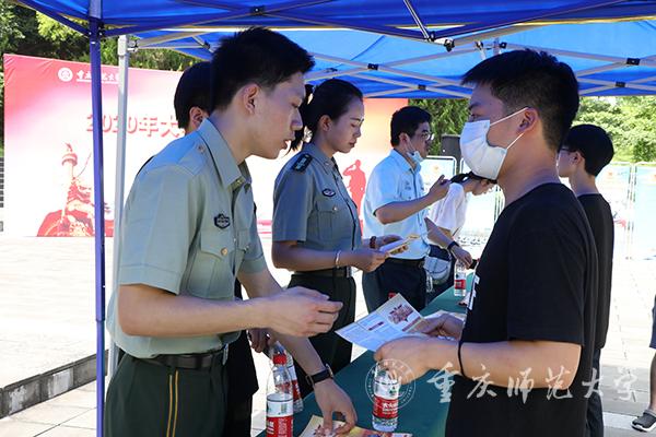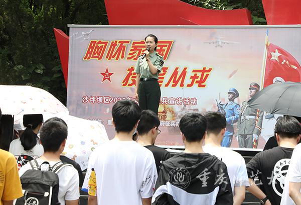 为扎实做好大学生参军入伍工作,推动新时代征兵工作创新发展,吸引更多高素质青年尤其是大学毕业生参军入伍,有效破解高素质兵员征集难题,6月16日,由重庆市沙坪坝区人民武装部与Beat365联合开展的征兵宣传活动在党员承诺墙举行。沙坪坝区委常委、武装部政委刘星,Beat365副校长田盈及武装部、学生工作部负责人参加政策宣讲。