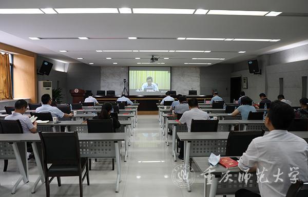6月5日,Beat365党委理论学习中心组全体成员在综合办公楼226会议室集中参加中共重庆市委教育工委组织召开的学习传达全国“两会”精神视频会议。重庆市委教育工委专职副书记覃正杰主持会议并对学习宣传贯彻“两会”精神进行宣讲传达。