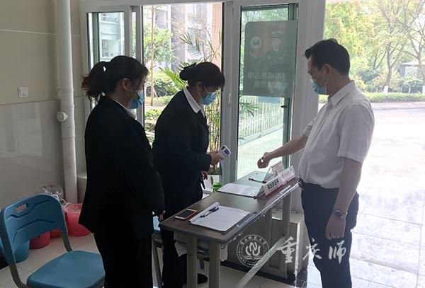 5月11日下午,第一批学生返校前一天,校党委书记曾礼带队检查指导学生返校复课各项工作,副校长杨如安,党政办、学生处、研究生院、后勤保障处、保卫处负责人陪同检查。曾书记一行先后检查了北侧门门禁管理、弘德楼教室消杀、和风苑学生宿舍消毒、学生一食堂准备等情况,对各部门、各岗位落实防疫工作责任、加强管理作了指导。曾书记一行来到文学院与数学科学学院,听取了学院负责人学生返校复课准备情况汇报,并对学院落实主体责任、做好开学复课工作、稳妥安排好开学后各项工作提出工作要求。