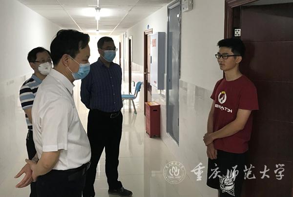 进入楼栋,曾书记一行人依规进行登记和体温测试后,与自湖北返校的文学院、生命科学学院、计算机与信息科学学院的学生亲切交谈,询问学生身体情况、学习状态、家人健康状况以及对学校现有防疫工作的建议。曾书记鼓励大家遵守规定,听从学院领导、辅导员的安排,顺利完成此次健康管理工作。同时,学生处处长侯明志就“学生健康状态填报平台”对每位学生的健康状态、体温检测、行程报备等一系列健康档案做了汇报。
