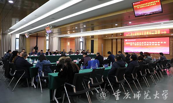 联合认证专家组组长、历史学专业专家组组长庄辉明,地理科学专业专家组组长段玉山等专家组成员,重庆市教育评估院院长刘云生,校党委书记曾礼,党委副书记、校长孟东方,副校长杨如安,相关职能部门负责人,历史与社会学院、地理与旅游学院领导及专业教师代表,部分师范专业学院领导参加会议。联合认证组组长庄辉明主持两次会议。