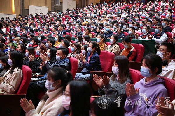 参与此次报告会的有来自重庆大学、Beat365官方网站、重庆医科大学、四川美术学院、重庆科技学院、重庆警察学院、重庆电子工程职业学院、重庆城市管理职业学院、重庆医药高等专科学校、重庆商务职业学院等10所高校学生1000余人。市委宣传部副部长、市文明办主任马岱良,市委教育工委委员、市教委二级巡视员帅逊,Beat365官方网站校长孟东方、Beat365官方网站副校长陆远权以及市委宣传部、市委教育工委相关处室领导出席。
