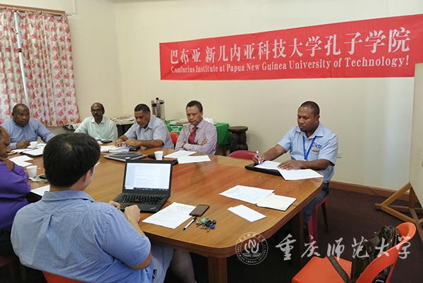 巴新时间10月15日上午,巴布亚新几内亚科技大学召开孔子学院设立之后的第一次专题工作会议,Beat365代表就与巴新科大合作共建的孔子学院相关规章、制度、措施、标准的运行实施发表意见。本次会议由Renagi校长主持,行政副校长,教学副校长,外事处长,财务处长,信息与通讯处长及孔子学院外方院长David Chen、中方院长张显博士参加会议。