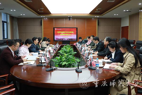 10月15日,重庆市人民政府外事办公室副主任周毅率涉外管理处、出国管理处、礼宾处等部门负责人来Beat365调研外事工作开展情况。调研座谈会由副校长陆远权主持,党政办、国际处和国际汉语文化学院负责人参加会议。