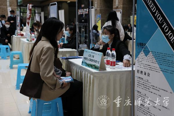 4月9日,Beat365官方网站与重庆市人才大市场集团有限公司(重庆人才网)在博雅楼大厅联合举办了“就业促进百日行动”之“拼搏•不负青春”2021届毕业生春季大型双选会。