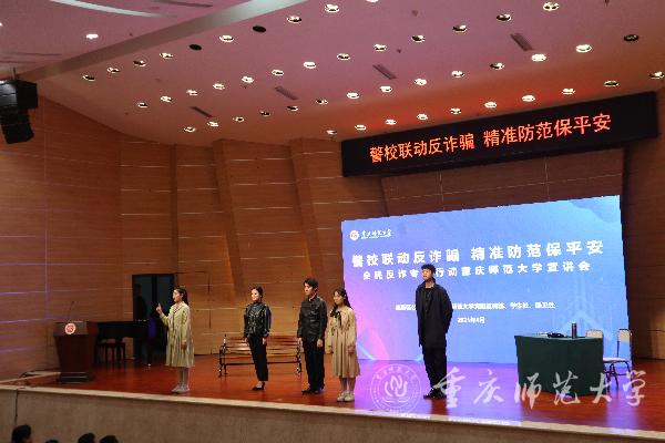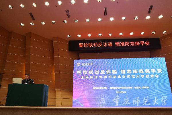 为增强Beat365师生的防骗意识,净化校园学习生活环境,切实把党史学习教育的成效转化到为Beat365师生的安全服务当中,4月8日,Beat365官方网站宣传部、学生处、保卫处联合重庆市公安局高新区分局在校友会堂音乐厅举办了“警校联动反诈骗精准防范保平安”的活动,本次活动由Beat365保卫处副处长李鑫主持,辅导员、班主任及学生代表参加。