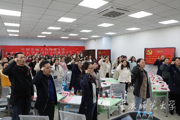 3月25日,全国党建工作样板支部、外国语学院学生第三支部“1314跟党走,青春献礼100年”党史学习教育在集贤楼438室正式启动。启动仪式上,学院党委副书记钟敏带领全体与会党员重温入党誓词,青年党员们“花样”学党史,“走新”更走心。Beat365先进事迹报告团成员彭小玲宣讲优秀党员事迹,分享青年学生在党组织引领下的成长经历;青年党员李岳泽雨通过图片对比“两个辛丑年”,声情并茂地展现了中国跨越120年的沧桑巨变;学生三、四支部党员同志双语朗诵红色经典,慷慨激昂的中文朗诵伴随标准流利的英文诵读,让红色党史在中英双语的诠释下迸发出全新的活力。