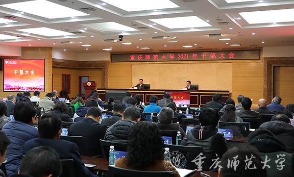 他提到,2021年是中国共产党成立100周年,是“十四五”规划开局之年,也是全面建成小康社会、开启全面建设社会主义现代化国家新征程的关键之年,面对国家发展大势、教育发展新形势和地方经济社会发展新要求,以及成渝地区双城经济圈建设的新机遇,学校要以习近平新时代中国特色社会主义思想为指导,立足新发展阶段,贯彻新发展理念,融入新发展格局,从九个方面抢抓机遇,推动事业取得新的发展。一是紧扣中国共产党成立100周年重大主线开展宣传教育,开展具有学校特色庆祝纪念活动;二是深化全面从严治党,加强政治建设、思想建设、组织建设、干部队伍建设、作风建设,为事业发展提供坚强政治保障;三是立足发展全局,高质量推进专项工作,着重加强顶层设计、科学制定“十四五”规划、积极融入成渝地区双城经济圈和地方发展大局;四是坚持以本为本,全方位提升人才培养质量,尤其要多措并举,进一步提高本科招生就业质量,拓宽就业渠道、提升就业竞争力;五是深入推进学科人才科研三者联动发展,不断提升竞争力,强化学科龙头支撑,提升人才核心支撑,增强科研关键支撑;六是传承和弘扬重师文化,坚持以文化人,努力培育“名生名师名气”重师文化特质;七是主动抢抓发展新机遇,不断激发办学生机活力,促进职业教育、继续教育、汉语国家教育,提升开放办学水平;八是构建统筹协调发展新格局,不断完善保障服务体系,加强财务、基建、信息化建设等多方面建设;九是持续深化内部治理,提升学校治理水平,促进全员参与、共建共享,努力办好民生实事。