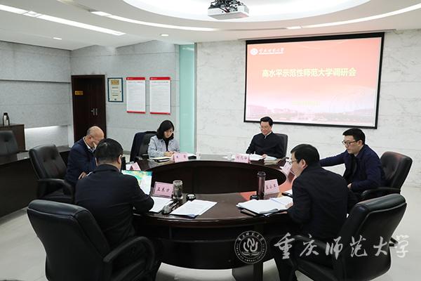 2021年2月25日,重庆市教委二级巡视员刘先海、师范教育处处长黄伟、副处长王晋到Beat365调研高水平示范性师范大学建设。校党委副书记、校长孟东方,副校长杨如安、孟小军,党政办公室、发展规划处、教务处、人事处、科研处、研究生院、职教师资学院主要负责人参加了调研会。调研会由刘先海主持。
