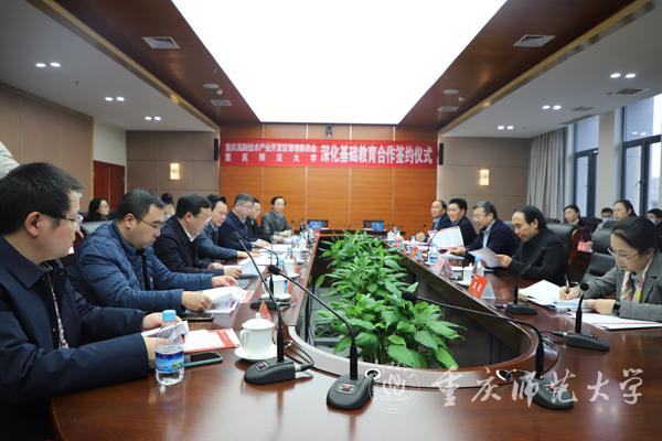 会上,学校与高新技术产业开发区管理委员会正式签订深化基础教育合作协议。双方将通过建立务实高效的合作发展机制,在深化基础教育改革、附属学校建设、智库建设、人才交流、平台合作、课题协作、学科建设等方面形成协同发展的良好局面,形成地方政府与高校合作的示范典型。