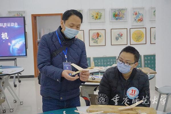 本届科技运动会吸引了来自全校16个学院的592名选手报名参赛,通过初赛选拔,有包括22名硕士研究生在内的283名选手进入决赛。本届运动会共有八个比赛项目,分别为团队项目——水火箭、纸桥承重、抛石机攻城、机器人和单人项目——无线电测向、弹射模型飞机、气弓箭、铁丝陀螺。比赛期间,同学们全身心投入制作比赛作品,展现了重师学子积极向上的精神风貌和科学严谨的学习态度。同学们用木板和简单的工具进行弹射模型飞机的制作,不断用砂纸将机翼打磨光滑,提高模型飞机的性能;废弃的饮料瓶也被同学们用来制作科技含量高的水火箭,充分体现了变废为宝、废物利用的思想;无线电测向中同学们独立思考,寻找一个个能发射无线电波的小型信号源;气弓箭比赛中同学们用自己亲手制作的“武器”瞄准靶心……科技运动会在校园内掀起了学科学、爱科学、用科学的热潮。经过一天激烈的角逐,八个比赛项目分别评出一等奖1名、二等奖3名、三等奖5名。同时王俊民、董晓云等16名老师获得“优秀指导教师奖”,初等教育学院、化学学院、地理与旅游学院获得“优秀组织奖”。