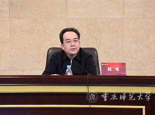 张鸣从“成渝地区”“双城”“经济圈”三个关键词入手,深刻阐述了建设具有全国影响力的重要经济中心、科技创新中心、改革开放新高地和高品质生活宜居地等“两中心、两地”的战略定位。结合川渝两地自古“一家亲”的历史渊源,深刻分析了推动成渝地区双城经济圈建设的重大意义,提出要全面贯彻落实《成渝地区双城经济圈建设规划纲要》,准确把握9项重点任务,在科技、生态、基础设施、产业等发展方向上集中精力做好自己的事、齐心协力办好合作的事,发挥“1+1>2”的作用,实现高质量发展。张鸣指出,高校要紧紧抓住这一重庆发展的重大历史性机遇,立足人才培养本职,发挥科学研究优势,拓展社会服务空间,活跃文化创新氛围,加强校际协同发展,为国家重大战略提供人才保障、科技支撑、智力支持、精神动力,在推动成渝地区双城经济圈建设中展现高校担当、高校作为。