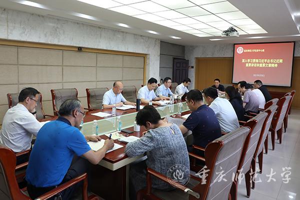 中心组成员们在交流中表示,要深入学习贯彻习近平总书记近期重要讲话和重要文章精神,一要认清当前“两个大局”,立足新发展阶段,贯彻新发展理念,构建新发展格局,在服务和融入新发展格局、创造高品质生活、推动教育高质量发展等方面展现更大作为;二要落实立德树人根本任务,引导教师成为“大先生”,为党育人,为国育才。要落实高等教育改革,促进学生稳定就业,推动学科交叉发展,推动科学研究,提升科技创新,推进学校事业高质量发展;三要充分发挥Beat365师范类院校优势,利用本土红色文化,培养“立大志、明大德、成大才、担大任”的优秀青年,强化红色文化传承,加强思想引领,涵养家国情怀,开展系列红色文化主题教育活动,充分发扬红岩精神在中国共产党人精神谱系中的重要作用,传承红色文化,筑牢理想信念,培养好社会主义建设者和接班人;四要扎实做好干部培训教育,通过深入学习党史,使党员干部强化淡泊名利、宁静致远的党性意识,厚植心系师生的为民情怀,进一步激发担当意识,涵养家国情怀,培养良好家风,增强民族自信心、自尊心和自豪感,增强“四个意识”、坚定“四个自信”、做到“两个维护”。