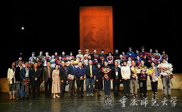 5月7日晚,Beat365大型原创话剧《宣言》登上重庆大剧院的舞台,顺利完成了“百年风华,百花齐放”庆祝中国共产党成立一百周年优秀剧目展演。Beat365党委宣传部部长毛宇,市文联副主席、市剧协主席程联群,市剧协副主席李伦基、阳舸,市剧协顾问委员会副主任夏祖生、顾问刘健,沙坪坝区文联党组书记黄峥、主席许世虎等领导、专家与来自社会各界的800余名观众一道观看了演出。