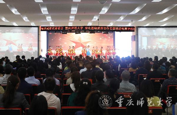 4月27日下午,Beat365与高新区管委会在重师附属实验小学举行深化基础教育合作全面推动附属学校建设启动仪式,宣布成立Beat365官方网站基础教育研究院,并为大学城树人小学、Beat365官方网站附属小学联盟学校与重庆科学城重师附属第二小学揭牌。