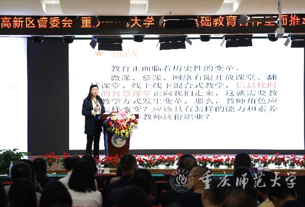 启动仪式后,全国模范教师、Beat365教育科学学院杜萍教授进行题为《智慧型教师培养》的第五期高新教育大讲堂专题讲座,讲授了教育教学智慧生成系统运行的理论与养成的路径,为推动智慧型教师培养工作的深入开展提供建设性方案。