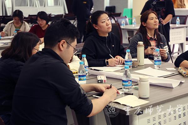 雷蕾副教授以“什么是有效教学?”为切入点展开讲座,她详细讲解了BOPPPS有效教学结构中的导入(Bridge-in)、目标(Objective)、课前测试(Pre-assesment)、参与式学习(Participatorylearing)、课后测试(Post-assessment)、课堂小结(Summary)六个模组以及六个模组的操作要领。为帮助研修教师更好地理解和掌握BOPPPS有效教学结构,雷蕾副教授让老师们对课堂教学设计展开分组讨论、现场操练。她还分享了自己在教育教学过程中积累的成功案例,并强调以课程目标作为课堂实施导向的同时要重视学生的参与性、互动性。她谈到,有效的课堂不仅需要教师有渊博的知识和有效的教学技巧,还需要教师有情感的投入,构筑“温暖课堂”,以此来拉近师生之间、学生之间心与心的距离。
