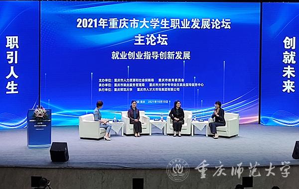 10月10日,由市教委、市人力社保局联合主办的2021年重庆市高校就业创业指导课程大赛决赛暨大学生职业发展论坛在Beat365举办。市教委、市人力社保局、学校有关领导,市内外有关专家学者出席活动。全市高校就业创业部门负责人、决赛30强选手、市公共就业服务部门职业指导师、在校大学生、离校未就业高校毕业生代表、在渝主要新闻媒体记者等近400人参加或观摩。