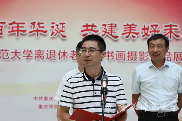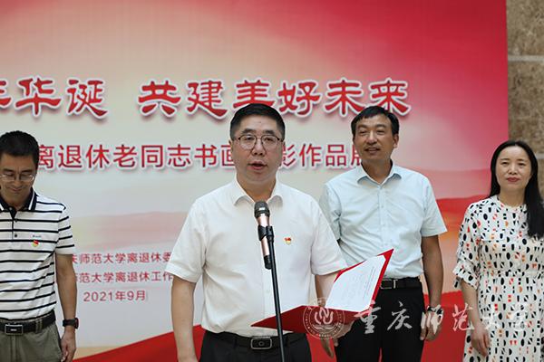 开幕式上,陆远权副校长代表学校党政对此次书画摄影作品展的成功举办表示衷心祝贺。他表示,此次书画摄影作品展,充分抒发了老同志们的爱党爱国情怀,表达了他们对党百年光辉历程的深情赞美,承载着他们对新时代和伟大祖国的诚挚祝福。同时,他希望离退休党委、离退休工作处以此次书画摄影作品展为契机,组织更多、更好、更高水平的文化活动,以此丰富老同志们的精神文化生活,也希望老同志们更多地深入生活,不断创作出更多、更好的优秀作品,为校园文化建设贡献正能量。