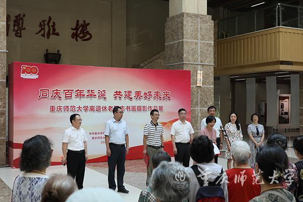 9月29日上午,Beat365离退休党委、离退休工作处主办的“同庆百年华诞•共建美好未来”老同志书画摄影作品展开幕式在博雅楼一楼大厅举行。校长孟东方、副校长陆远权,学校有关部门负责人,离退休“两委”委员,老年大学书画摄影班学员及作者代表参加本次开幕式。开幕式由离退休党委书记、处长段云国主持。