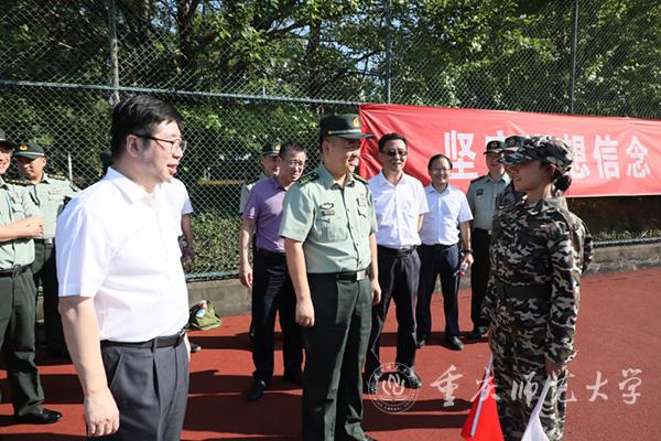 9月22日上午9点,陆军工程大学通信士官学校校长魏涛大校、副政委张立峰大校、办公室主任谢宜杰上校、科研学术处处长沈建国大校、供应保障处处长金伟勇上校、基础部主任青山良大校、教务处副处长李学中校和教务处参谋陈凡少校一行来Beat365大学城校区检查指导2021级新生军训工作。Beat365校长孟东方、党委副书记陈志军、党政办主任陈进东、保卫处处长唐加祥、学生处处长侯明志等陪同检查。