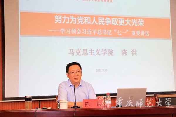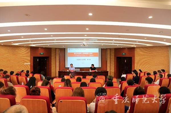 9月15日下午,在沙坪坝校区5301报告厅,继续教育学院(教师培训学院)召开了学习领会习近平总书记“七一”重要讲话的专题讲座,马克思主义学院陈洪教授受邀主讲。讲座由学院党总支书记胡忠建主持,全体党员及教职工、学生党员、入党积极分子参加。