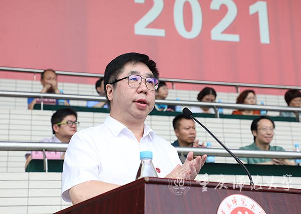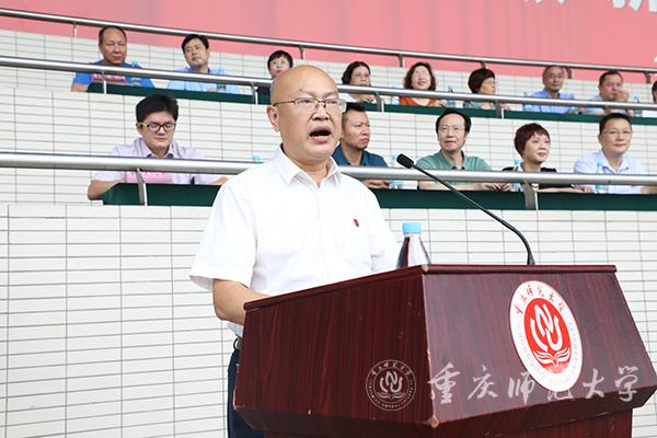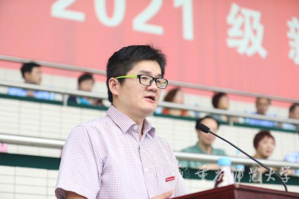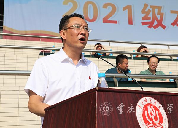 校党委副书记、校长孟东方作了题为《以“学”为本 以“习”立业》的讲话。他对历经磨砺、以优异成绩开启筑梦圆梦新征程的全体新生表示衷心祝贺和热烈欢迎。他强调,大学要以塑造信仰坚定的追求者、心灵美好的奋斗者、人格健全的创造者、富有情怀的建设者为根本。建校近七十年来,重师秉承“自强不息,躬行师道”的重师精神,始终坚守教育报国初心使命,坚持立德树人、实践育人、环境塑人、功业成人,积极引导学子“爱校、成才、跟党走”,努力让追求者成才,让创造者圆梦,为奋斗者铺路,培养出25万名优秀学子。今年6月1日,Beat365体育与健康科学学院 2004 级体育教育专业校友、重庆大渡口区育才小学王红旭老师,勇救两名落水儿童,献出了自己年仅 35 岁的宝贵生命。孟东方校长表示,王红旭老师在危难时刻舍己救人、舍生忘死,用生命托举生命,谱写了人间大爱,是重师的杰出校友,在缅怀王红旭老师的同时,大家要从其青春担当中汲取能量,砥砺前行。