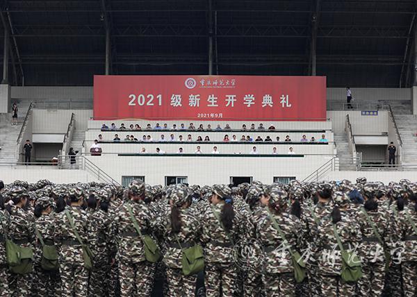 “我们重庆师大,厚德笃学,理肃文昌……我们重庆师大,砺志创新,日灿月华。”开学典礼在慷慨激昂的校歌声中结束。随后,举行了2021级本科生军训动员大会。全体校领导,陆军工程大学通信士官学校基础部主任青山良大校,陆军工程大学通信士官学校21大队大队长马振翔上校出席军训动员大会。