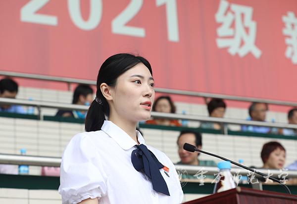 “新的起点开启新的希望,新的空白承载新的梦想。大学期间,我们会做好自我规划,明确目标,调整心态,为自己的大学生活勾画出完美的蓝图。”新闻与传媒学院2021级新闻传播学类专业的陈雪鹰同学代表本科生新生许下承诺。研究生新生代表、教育科学学院2021级应用心理学专业江佳芮同学号召研究生要脚踏实地学习专业知识和技能,时刻秉承“自强不息,躬行师道”的重师精神,传承“学高为师,身正为范”的校风,大力弘扬“勤学善思,求是致用”的优良学风,在学术的道路上努力拼搏,不负时代的重托,无悔青春的选择。