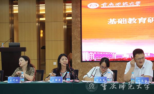 随后,高新区公共服务局初教学前组组长王丽君发言。她对Beat365提供了一个这样相互交流的平台表示感谢,对学校基础教育研究院给予附属学校教研工作的精细指导表示感谢,对外联中心拟定共荣共生工作草案和专家工作方案表示感谢。她希望Beat365官方网站、高新区公共服务局、基础教育研究院三方能够建立长效机制,共同助推附属学校发展。她以今年开学工作大会上高新区公共服务局周文杨局长的一段讲话作为结尾,希望附属学校能够“以功成不必在我的精神境界和和功成必定有我的历史担当,大力实施科创高新智慧教育,全力打造西部教育高地引领区、教育创新发展先行区、全国智慧教育示范区,为谱写新时代高新教育的华丽篇章而努力奋斗”。