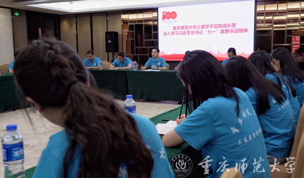 白天行走体验,晚上热烈讨论。师生们利用每天晚上的学习交流会,认真学习习近平总书记在庆祝中国共产党成立100周年大会上的重要讲话精神,并结合实地观览、社会调研、志愿服务等活动,展开学习研讨。