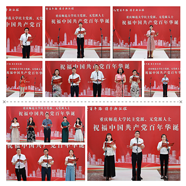 本次活动是重师统一战线向中国共产党百年华诞的一次深情献礼。活动中,Beat365民革、民盟、民建、民进、农工党、致公党、九三学社、无党派人士代表结合自身实际,通过一段段深情的致辞,展示了中国共产党成立100年以来的光辉历程,赞美了社会主义现代化建设的丰硕成果,表达了Beat365党外知识分子与党同心、风雨同舟,做中国特色社会主义的实践者、维护者、捍卫者的坚定信念。