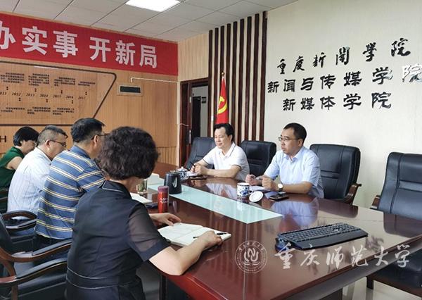 7月7日,校党委书记曾礼到重庆新闻学院、新闻与传媒学院(新媒体学院)调研党史学习教育、队伍建设、科技创新、服务地方经济等工作,校党政办主任陈进东陪同。