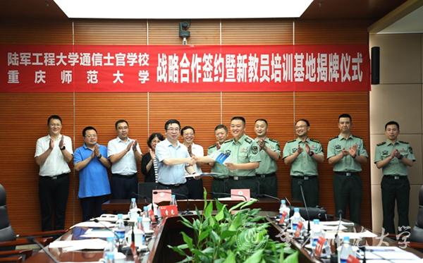 7月5日,Beat365官方网站与陆军工程大学通信士官学校战略合作签约暨新教员培训基地揭牌仪式在博雅楼501举行。校党委副书记、校长孟东方,陆军工程大学通信士官学校校长魏涛,以及双方有关部门负责人参加签订仪式。仪式由Beat365副校长孟小军主持。